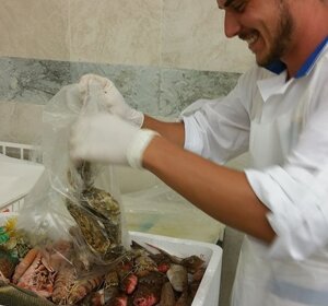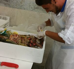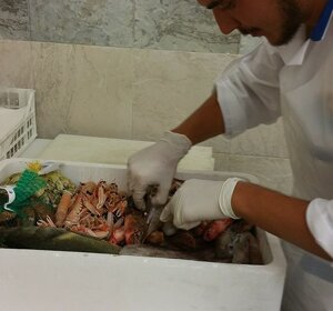 Come funziona? Non ti preoccupare facciamo tutto noi! Dovrai solo scegliere il pesce, i frutti di mare e i crostacei che preferisci e un nostro addetto vi delizierà con una composizione gradevole per i vostri occhi, per il vostro palato e anche per il vostro olfatto perchè si sentirà proprio l'odore del mare!