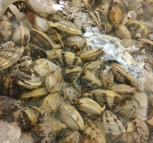 Impianto specializzato per la rifinitura e l'etichettatura dei frutti di mare
